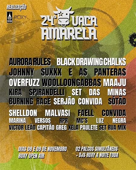 Nos dias 8 e 9 de novembro, Goiânia recebe a 24ª edição do Festival Vaca Amarela, com shows na Roxy e no Open Air!