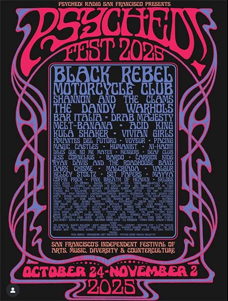 De 24 de outubro a 2 de novembro, São Francisco celebra a música psicodélica com o Psyched! Fest San Francisco 2025, que terá Black Rebel Motorcycle Club, The Dandy Warhols, Bar Italia, Kula Shaker e mais!
