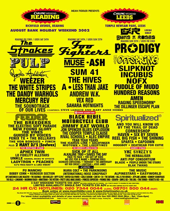 e Blur foram os headliners em 2000. Em 2002 o line-up é o do poster