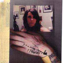 psicoses, psiquiatras e tristezas". O encarte mostra a guitarrista travestida